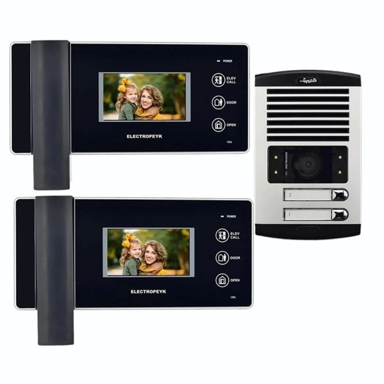 مجموعه دربازکن الکتروپیک مدل FD/1086/2/1096x2-Black .شامل : پنل دم دری 1086 با قابلیت دید در شب و مجهز به چراغ LED میباشد . جنس بدنه این پنل آلومینیوم میباشد و دارای سوییچ ضد سرقت است.گوشی تصویری مدل 1096 الکتروپیک دارای نمایشگر 4/3 اینچ. با قابلیت های اتصال به دو صفحه دم دری . اتصال به دوربین امنیتی .فراخوان آسانسور .دارای کلیدهای لمسی. ذخیره عکس و فیلم .ضبط فیلم با صدا . اتصال کارت حافظه .دارای 10 ملودی زنگ .شرکت الکتروپیک یکی از شناخته شده ترین برند های تولیدکننده آیفون تصویری است که با طراحی و تولید انواع درب بازکن تصویری ساده، لوکس و کاربر پسند توانسته بین رقبای خارجی و ایرانی خود جایگاه خوب و مطمئنی را برای خود داشته، و از آن استفاده تمام کمالی را برده، و باعث این امر شده که این کمپانی ها سال ها به تولید آیفون تصویری رنگی با مدل ها و رنگ های مختلف بپردازد.
