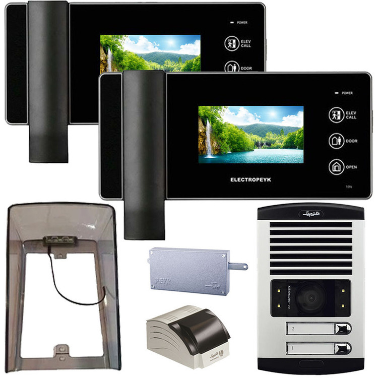 مجموعه دربازکن الکتروپیک مدل FD/1086/2/1096x2-Black .شامل : پنل دم دری 1086 با قابلیت دید در شب و مجهز به چراغ LED میباشد . جنس بدنه این پنل آلومینیوم میباشد و دارای سوییچ ضد سرقت است.گوشی تصویری مدل 1096 الکتروپیک دارای نمایشگر 4/3 اینچ. با قابلیت های اتصال به دو صفحه دم دری . اتصال به دوربین امنیتی .فراخوان آسانسور .دارای کلیدهای لمسی. ذخیره عکس و فیلم .ضبط فیلم با صدا . اتصال کارت حافظه .دارای 10 ملودی زنگ .شرکت الکتروپیک یکی از شناخته شده ترین برند های تولیدکننده آیفون تصویری است که با طراحی و تولید انواع درب بازکن تصویری ساده، لوکس و کاربر پسند توانسته بین رقبای خارجی و ایرانی خود جایگاه خوب و مطمئنی را برای خود داشته، و از آن استفاده تمام کمالی را برده، و باعث این امر شده که این کمپانی ها سال ها به تولید آیفون تصویری رنگی با مدل ها و رنگ های مختلف بپردازد.بارانگیر شفاف LED دار پارس صنعت ماهان از کیفیت مطلوبی برخوردار است و از پنل دم دری در برابر نور خورشید، گردوخاک، باران، برف و تگرگ محافظت می کند.چراغ های LED تعبیه شده بر روی این بارانگیر باعث افزایش دید در شب دوربین پنل آیفون می گردد.جنس بدنه این محافظ پلی کربنات UV دار می باشد که در برابر رنگ پریدگی بسیار مقاوم است. این پکیج شامل پنل دم دری+گوشی تصویری+منبع تغذیه+قفل زنجیری+محافظ بارانگیر می باشد. این پکیج کامل می باشد و با خرید آن نیازی به خرید سایر اقلام نخواهید داشت.
