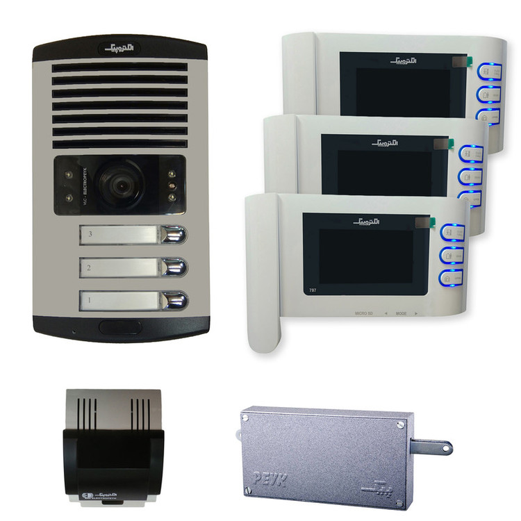 پکیج 3 واحدی الکتروپیک شامل 3 مانیتور 797 ( نمایشگر 4.3 اینچ، دارای قابلیت فیلمبرداری و عکسبرداری و ضبط صدا، قابلیت اتصال به دوربین امنیتی و کارت حافظه)، یک عدد پنل درب باز کن تصویری الکتروپیک مدل 1086 (قابلیت دید در شب، دارای سوئیچ ضد سرقت و قابلیت چرخش دوربین در تمام جهات) و یک عدد منبع تغذیه مخصوص 386 (قابلیت اتصال به برق 220 ولت شهری) و یک عدد قفل زنجیری است. پکیج ارائه شده کامل بوده و در صورت تهیه، نیازی به تهیه سایر لوازم نخواهید داشت.