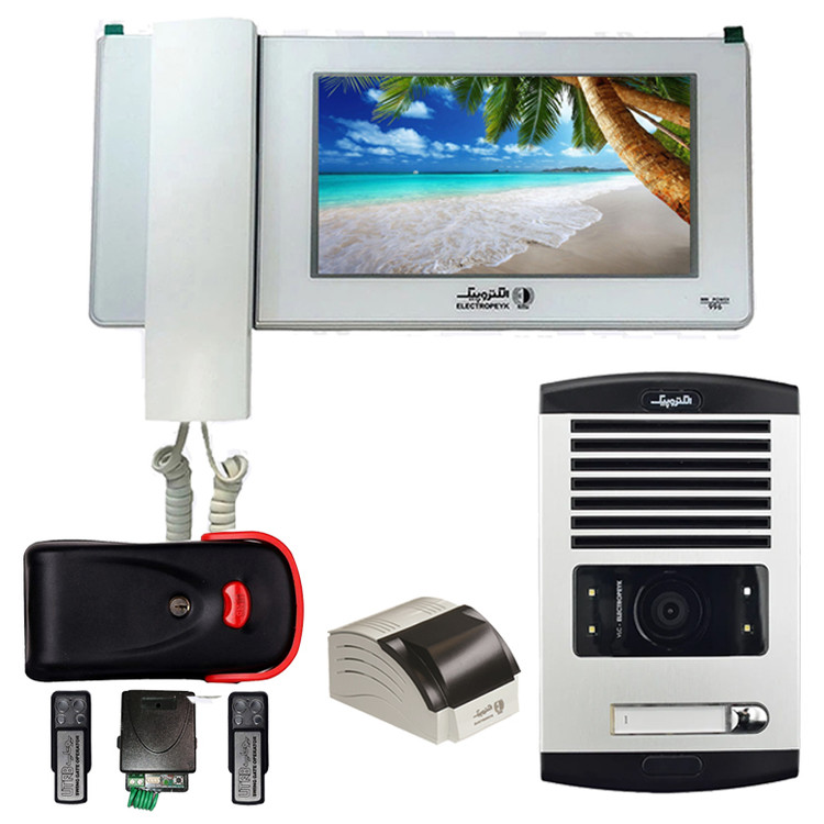 مجموعه دربازکن الکتروپیک مدل FD/1086/1/996x1-white.شامل : پنل دم دری 1086 با قابلیت دید در شب و مجهز به چراغ LED میباشد . جنس بدنه این پنل آلومینیوم میباشد و دارای سوییچ ضد سرقت است. . گوشی تصویری مدل 996 الکتروپیک دارای نمایشگر 7 اینچ تمام لمسی .قابلیت اتصال به دو پنل دم دری .قابلیت اتصال به دو دوربین مداربسته ، قابلیت بازکردن درب پارکینگ، قابلیت فراخوانی آسانسور.دارای حافظه داخلی ضبط عکس و فیلم، قابلیت ضبط فیلم با صدا، با امکان ارتقا به 32 گیگابایت را دارد. همچنین این پکیج دارای منبع تغذیه مدل 386 به همراه قفل برقی مدل 1093ریموتدار یوتاب که تولید شده توسط شرکت یوتاب ( از زیر مجموعه های شرکت الکتروپیک ) می باشد. یکی از با کیفیت ترین محصولات قفل برقی تولید داخل است که با مقاومت و امنیت بسیار بالا به همراه ریموت کنترل جهت استفاده بر روی درب های حیاط منازل و مجتمع های مسکونی و تجاری و درب پارکینگ مورد استفاده قرار میگیرد . وزن هر قفل ریموتی یوتاب حدود 3 کیلوگرم است و ابعاد آن 11x9x20 سانتی متری میباشد جنس بدنه قفل از فولاد ضد زنگ و بدلیل استفاده از ورق گالوانیزه از مقاوت بسیار بالایی برخوردار است ، رنگ این قفل مشکی رنگ است که شاسی قرمز رنگ برای بازکردن درب به صورت دستی برای آن تعبیه شده است. قفل ریموت دار یوتاب دارای 5 عدد کلید و 2 عدد ریموت الکتروپیک بهمراه یک رسیور تک کانال عرضه میگردد.امکان اضافه نمودن ریموت در این رسیور وجود دارد و میتوان آن را به تعداد زیاد تکثیر کرد امکان تعویض مغزی قفل داخلی و بیرونی ، قابلیت نصب و راه اندازی به صورت عمودی یا افقی دارد و عدم باز شدن قفل در اثر لرزش زیاد و حتی ضربه از دیگر ویژگی های این قفل می باشد .قابلیت نصب و تنظیم مغزی قفل بیرونی 50 تا 80 میلیمتر را نیز دارد.پنل بیرونی ،گوشی تصویری و منبع تغذیه دارای 3 سال گارنتی و قفل برقی یوتاب دارای 2 سال گارانتی شرکتی می باشد .این پکیج کامل بوده و با خرید آن نیازی به خرید سایر اقلام نخواهید داشت.