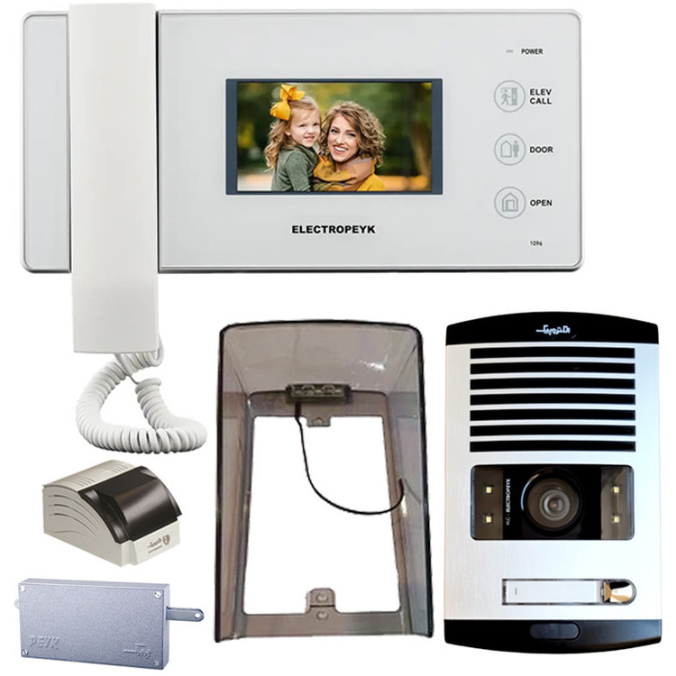 مجموعه دربازکن الکتروپیک مدل FD/1086/3/1096x3-Black.شامل : پنل دم دری 1086 با قابلیت دید در شب و مجهز به چراغ LED میباشد . جنس بدنه این پنل آلومینیوم میباشد و دارای سوییچ ضد سرقت است.گوشی تصویری مدل 1096 الکتروپیک دارای نمایشگر 4/3 اینچ. با قابلیت های اتصال به دو صفحه دم دری . اتصال به دوربین امنیتی .فراخوان آسانسور .دارای کلیدهای لمسی. ذخیره عکس و فیلم .ضبط فیلم با صدا . اتصال کارت حافظه .دارای 10 ملودی زنگ .شرکت الکتروپیک یکی از شناخته شده ترین برند های تولیدکننده آیفون تصویری است که با طراحی و تولید انواع درب بازکن تصویری ساده، لوکس و کاربر پسند توانسته بین رقبای خارجی و ایرانی خود جایگاه خوب و مطمئنی را برای خود داشته، و از آن استفاده تمام کمالی را برده، و باعث این امر شده که این کمپانی ها سال ها به تولید آیفون تصویری رنگی با مدل ها و رنگ های مختلف بپردازد.بارانگیر شفاف LED دار پارس صنعت ماهان از کیفیت مطلوبی برخوردار است و از پنل دم دری در برابر نور خورشید، گردوخاک، باران، برف و تگرگ محافظت می کند.چراغ های LED تعبیه شده بر روی این بارانگیر باعث افزایش دید در شب دوربین پنل آیفون می گردد.جنس بدنه این محافظ پلی کربنات UV دار می باشد که در برابر رنگ پریدگی بسیار مقاوم است. این پکیج شامل پنل دم دری+گوشی تصویری+منبع تغذیه+قفل زنجیری+محافظ بارانگیر می باشد. این پکیج کامل می باشد و با خرید آن نیازی به خرید سایر اقلام نخواهید داشت.