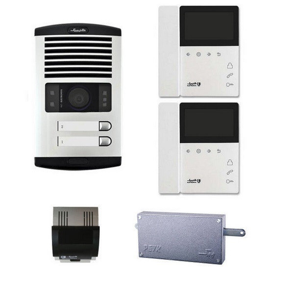 پکیچ کامل دو واحدی الکتروپیک شامل 2 عدد مانیتور مدل 897 (4.3) اینج حافظه دار ، 1 عدد پنل درباز کن تصویری رنگی مدل 1086 ( قابلیت دید در شب و قابلیت تنظیم دوربین در تمامی جهات در هنگام نصب ) و 1 عدد منبع تغذیه و 1 عدد قفل زنجیری است . این پکیچ کامل بوده و در صورت تهیه نیازی به سایر لوازم نخواهید داشت . .