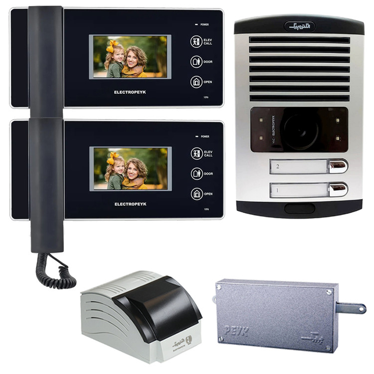 پکیج کامل آیفون تصویری دو واحدی الکتروپیک _ شامل : 1 عدد پنل دو واحدی تصویری مدل FD-1086 با قابلیت دید در شب ، 2 عدد گوشی تصویری ( مانیتور ) مدل 1096 مشکی با دکمه های لمسی و صفحه نمایش 4.3 اینچی با قابلیت عکسبرداری و فیلمبرداری و اتصال کارت حافظه، 1 عدد قفل زنجیری مدل 671 و 1 عدد منبع تغذیه مدل 386 می باشد . این پکیچ کامل بوده و با خرید این مجموعه دیگر نیازی به خرید سایر اقلام نخواهید بود. شرکت الکتروپیک یکی از شناخته شده ترین برند های تولیدکننده آیفون تصویری است که با طراحی و تولید انواع درب بازکن تصویری ساده ، لوکس و کاربر پسند توانسته بین رقبای خارجی و ایرانی خود جایگاه خوب و مطمئنی را برای خود داشته باشد .