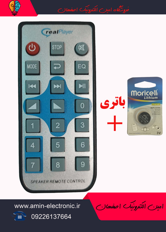 کنترل یدکی اسپیکر و ماژول های فلشخور و بلوتوثی (mp3 plaer) همراه با باتری مرغوب.